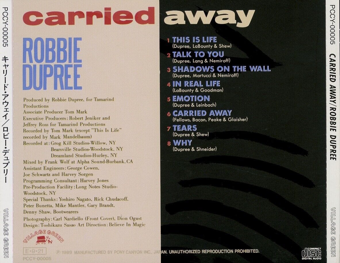 특히 "Carried Away"는 Robbie Dupree의 감성적인 보컬이 돋보이는 대표곡이며, 재즈풍의 리듬이 가미된 "Real World", 부드러운 미드템포의 "Why" 등도 주목할 만한 트랙입니다. 또한, 수준 높은 세션 뮤지션들의 연주가 더해져 앨범의 완성도를 더욱 높이고 있습니다.